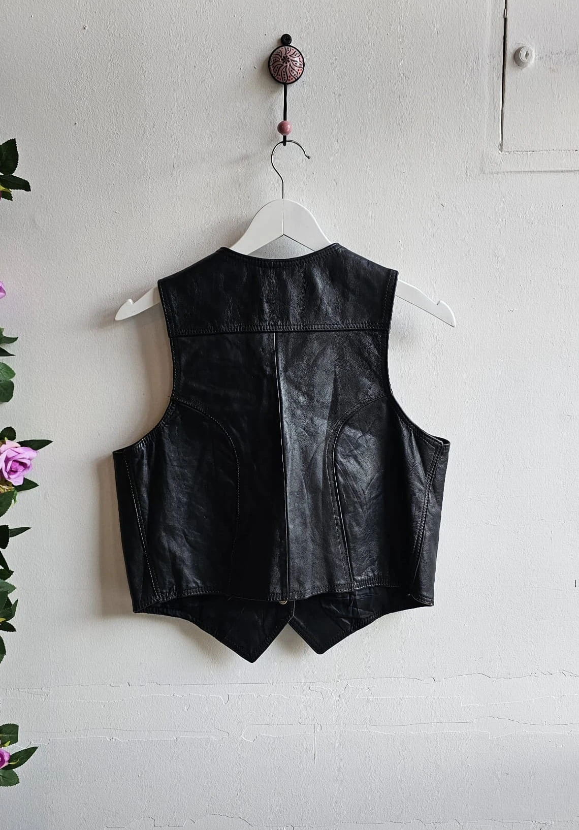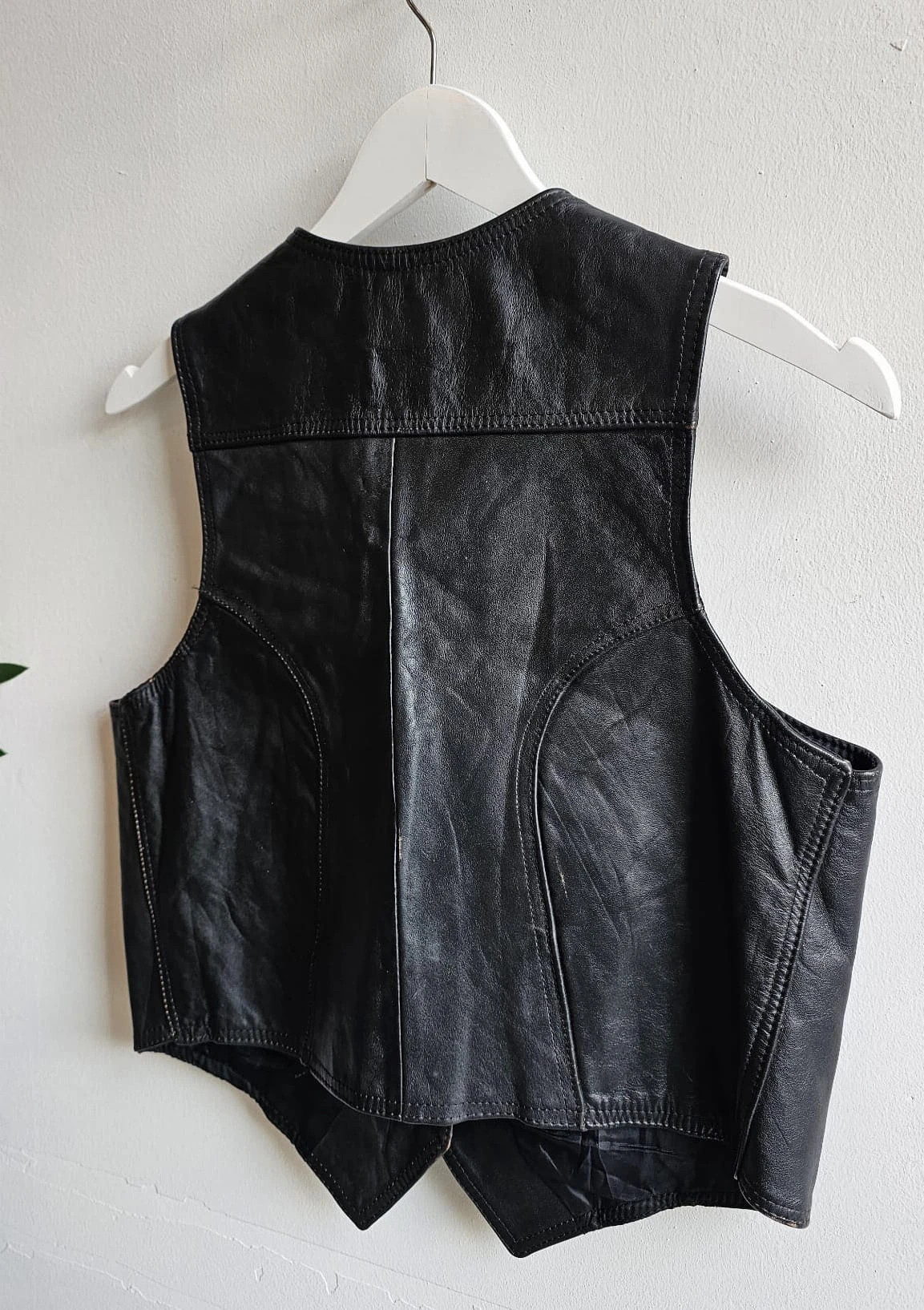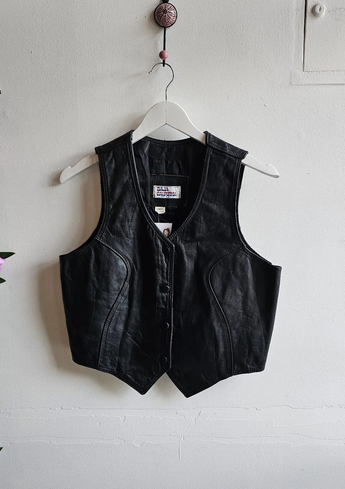 Skórzana kamizelka o krótszym kroju zapinana na kapsle.