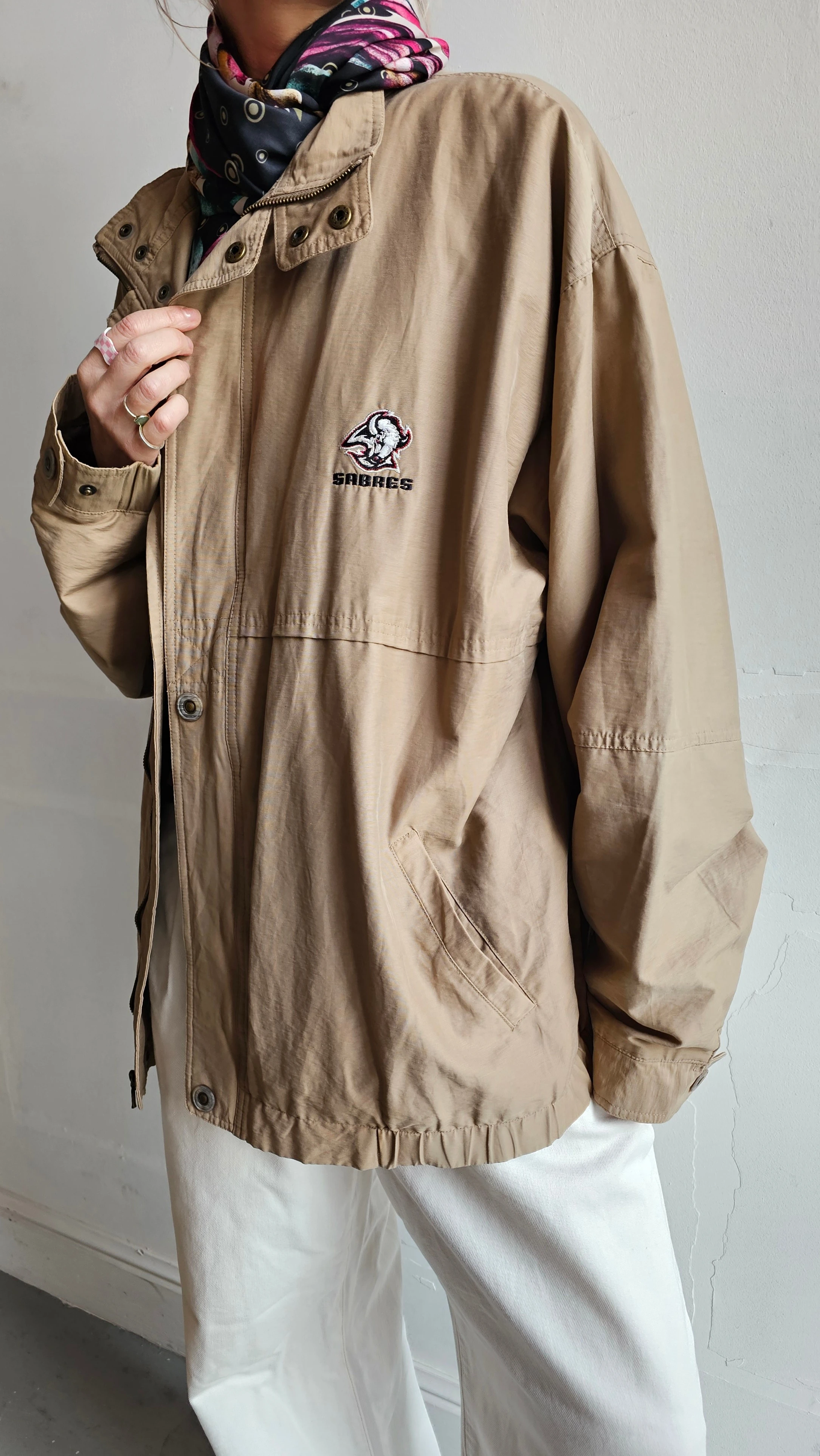 Beżowa kurtka bomber Lee vintage o luźnym, oversize’owym kroju. Lekka i wygodna, idealna na przejściowe dni i codzienne stylizacje. Minimalistyczna forma z subtelnym logo wpisuje się w estetykę modern vintage.