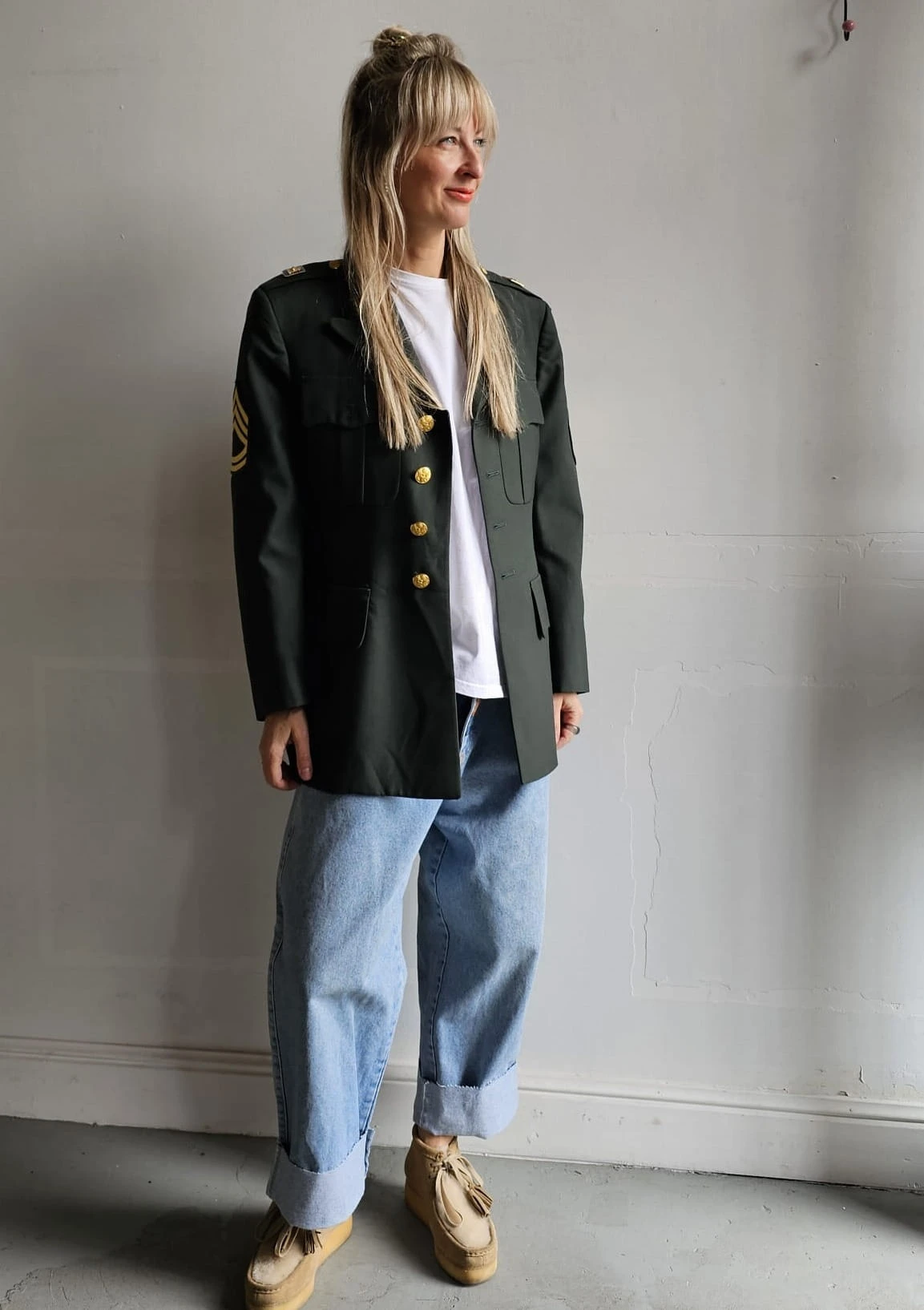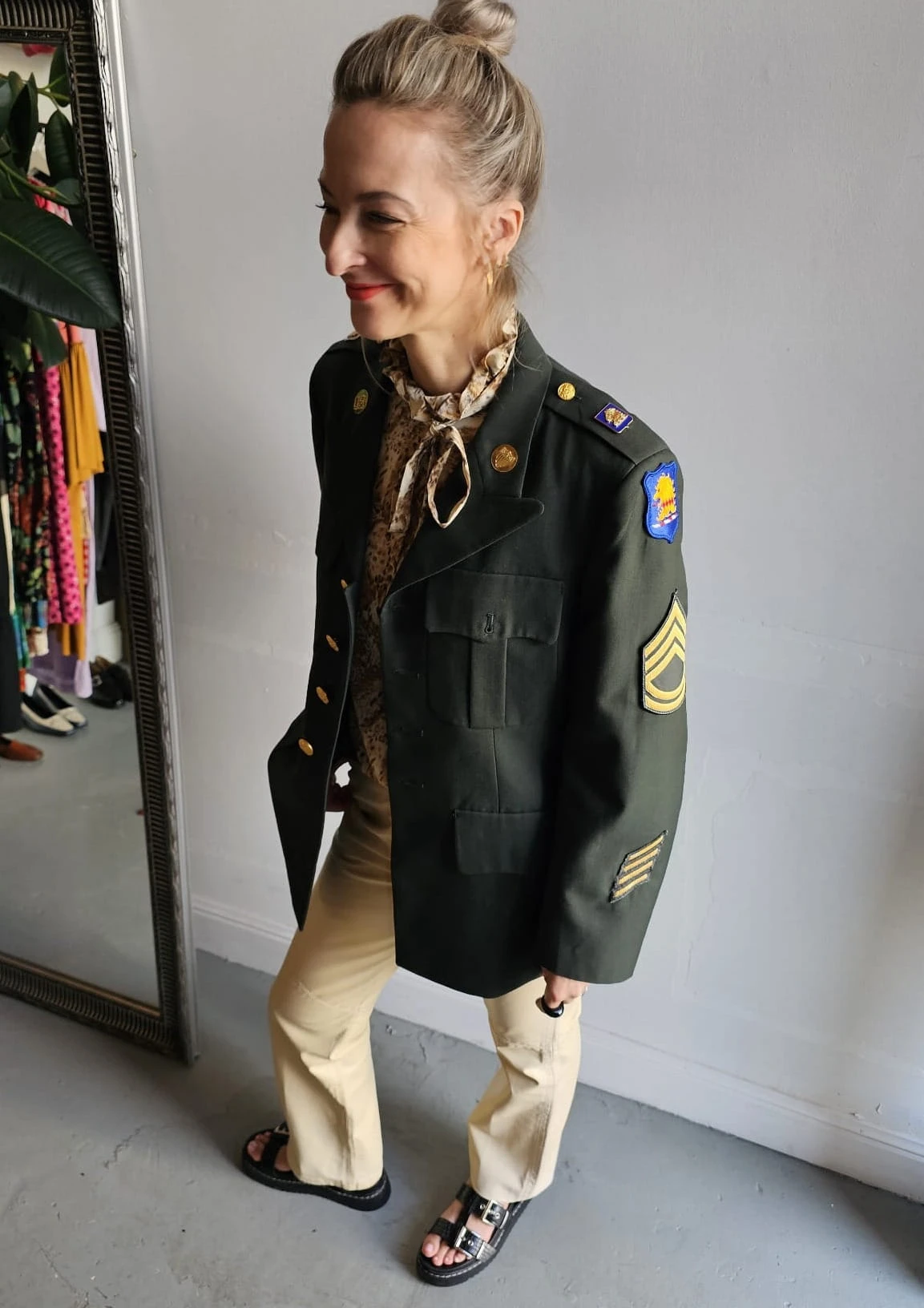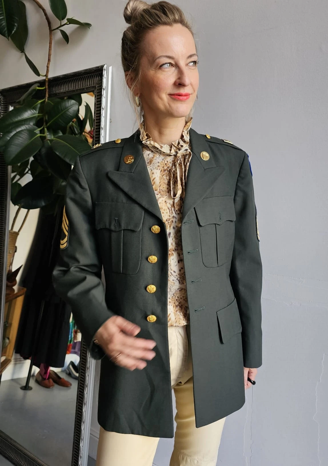 Cechy charakterystyczne: military, naszywki, ozdobne guziki, kieszenie, oversize, unisex