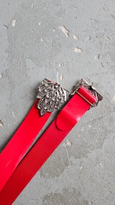 Wyrazisty pasek z naturalnej skóry w intensywnej czerwieni, który natychmiast buduje stylizację. Rzeźbiona, biżuteryjna klamra dodaje mu charakteru i lekko vintage’owego glamouru. Idealny do taliowania marynarek, sukienek i oversize’ów.