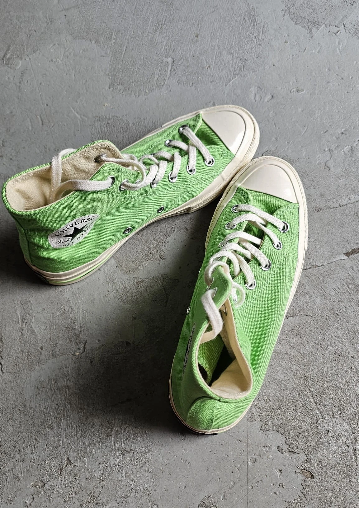 Trampki Converse z limitowanej kolekcji w unikatowym kolorze neonowej zieleni.